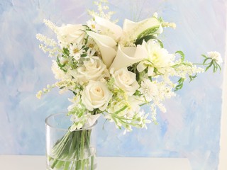 C90 화이트 장미&카라 믹스 부케
