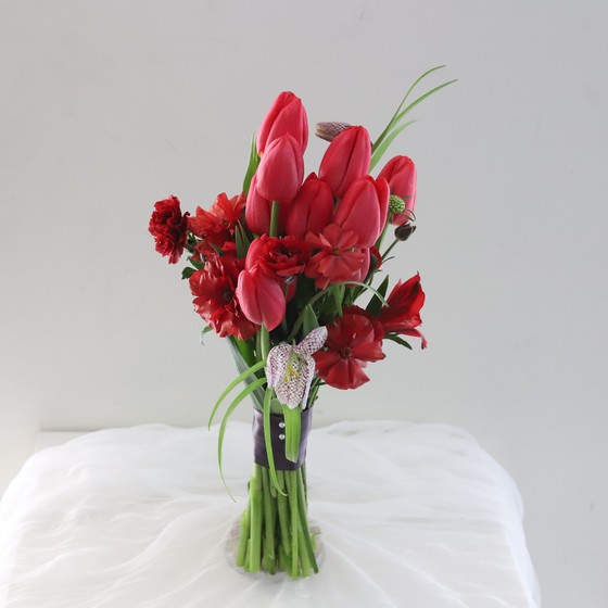레드 튤립으로 이루어진 부케입니다.