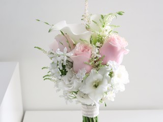 고급스러운 엠마우드 장미와 아스틸베, 화이트 옥시를 믹스한 단아하고 여성스러운 느낌의 부케입니다.